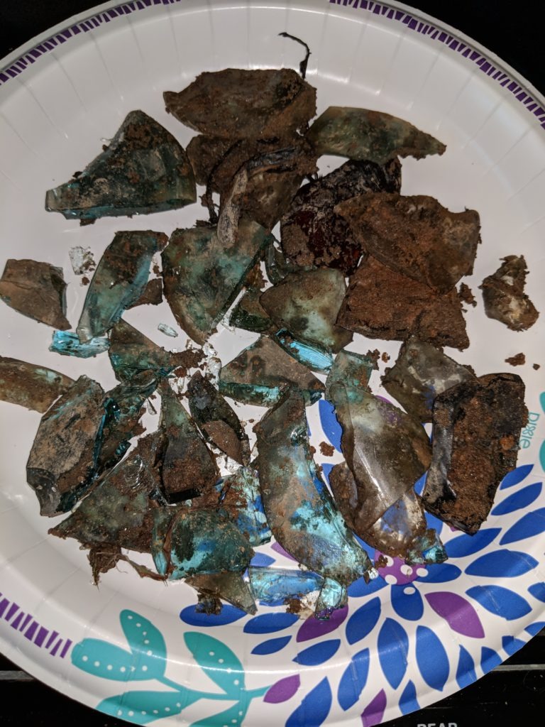 I’ve kept a lot of the blue glass and the older glass pieces I have brought home so I’ve decided to try to do a little experiment. Otherwise, I’m just holding onto a box of dirty broken glass.